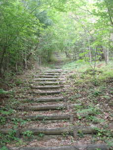 ▲先が見えない階段 ▲三角点のあるピ−ク