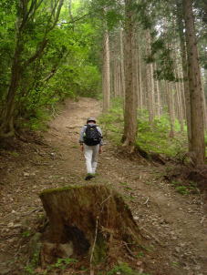 最初はなだらかな新緑の中をハイキング気分♪で歩く....