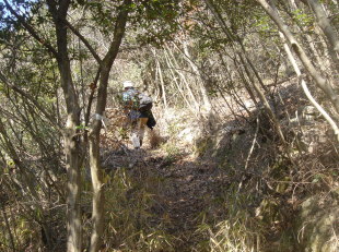 ▲直登する ▲分岐点!右方向に赤テ−プ
