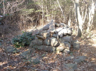 どうにかイバラと格闘しながら強引に進むと目の前に、大きな石や石垣が現れた!