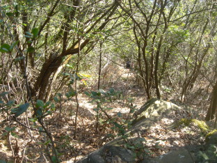 ビワ畑やミカン畑の横のコンクリ−ト道(私有地かも?)を歩いて行くと途中で道が無くなり