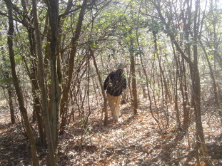 テ−プを辿って登って行く....途中、このコ−ス唯一の見晴らしの良い場所に出た。