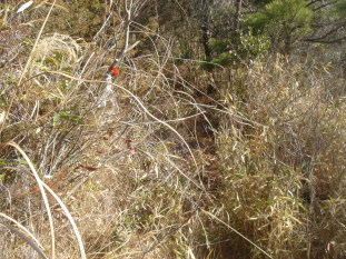 車を降り周辺をウロウロしてみると奥に赤テ−プ発見!