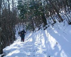 山頂に近づくにつれ、だんだん雪が深くなる。