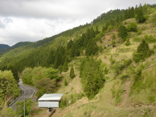 | 特徴がある山容の烏帽子山.... 烏帽子って何?と思い調べてみると神社の神主さんがかぶられている あの独特な形の帽子の事だそうだ。そういえば平安時代の貴族の男性のかぶりもの としても有名ですね。あの美男子光源氏さま♪もかぶってましたね(笑) 余談はさておき、烏帽子山は今まで何度か挑戦しようとしたけど、 色々な事情で延期になっていた山だ(積雪・パンク〜) やっと登る事が出来る! 三加茂町から県道三加茂東祖谷線へ入り落合峠を目指す。 途中の桟敷峠には風物詩?でもある牛の放牧が行われていた。 こんな急斜面を昇り降りする牛さんも大変だなぁ〜 桟敷峠を過ぎ、深淵の集落(多分人は住んでいない?)を抜け どんどん標高を上げて行くと落合峠1520mへ到着! (未舗装部分はほんの少しになっていた) 登山口付近は車で一杯だったので少し下にある駐車場へ車を停める。 今日は登山者が多いなぁ〜私達も準備し出発! |