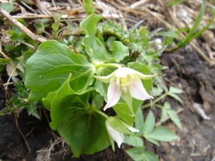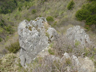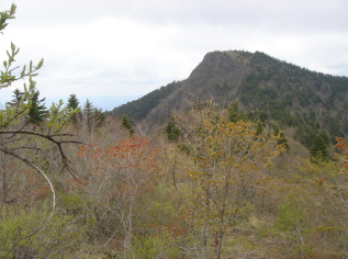 | 落合峠から約30分で落ハゲ(1683m)へ到着! 三角点の横に、どなたが書かれたのか「東エボシ1683m」と 書かれた石が置かれていた。 確かに、落ハゲという名前はちょっとかわいそう〜 落ハゲ山頂を後にし第二のピ−ク前烏帽子山へ向かう..... 途中、の鎖場!思ったほど怖く無くどうにか通過 しばらくは様々な木の花を楽しみながら尾根道を歩く。 大好きなブナも芽吹きの準備中〜 |