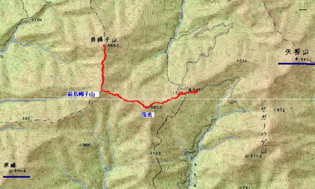 | 自宅-R193-脇町-R192-三加茂-県道三加茂東祖谷線-桟敷峠am8:25-深淵 落合峠am9:00-出発am9:15-落禿am9:45-前烏帽子山(小休止)am10:40 出発am11:00-烏帽子山(昼食)am11:40-出発pm1:00-前烏帽子山pm1:50 落禿pm2:45-大岩pm3:10-落合峠pm3:20 ■歩行時間約6時間(休憩含む) |