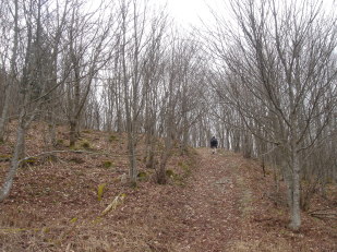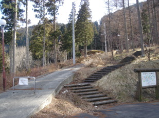 | どうにか無事に(笑)登山口である風呂塔キャンプ場へ到着! さすがに一台も停まっていません..... 夏場は賑やかであろうコテ−ジの横を通り山頂を目指します。 よく整備された道を歩く事約30分であっけなく山頂到着!! |