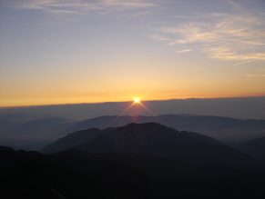 ▲空がオレンジ色に染まって来た! ▲感動の御来光です