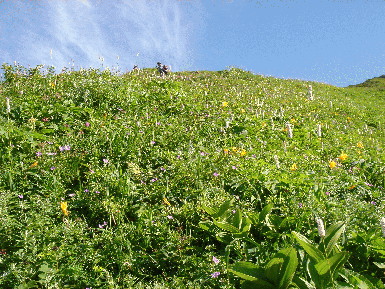 しばらく降りると道の両側は砂防新道とはまた違ったお花畑♪この辺りは馬のたてがみと呼ばれているそうです。