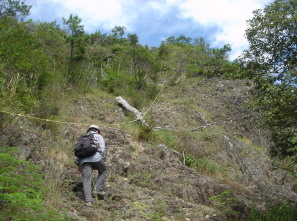 ▲タイヤを利用した??? ▲ロ−プを使って岩場を登る