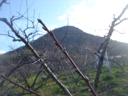 桃畑の横を通ったが、まだ硬い蕾...花が咲くのが待ち遠しい