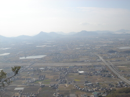 ▲天狗岩から下を見下ろす ▲善通寺五岳山 ▲天狗岩から上を見る