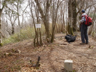 西門山と書かれた山頂表示があったので山頂到着♪と思ったがSさんはまだ先へ進んでいく。