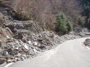 トンネルに近くになると所々で激しい土砂崩れ....どうにか車1台通れるようになっているものの