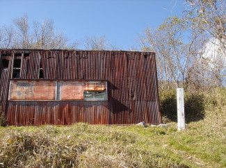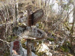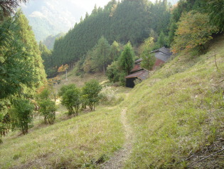| 休憩もそこそこに日和田登山口へ向かって出発する。(なんせ私、歩くのが遅いもので、ゆっくり出来ません) 最初は緩やかな道だったので、やっぱりこちらのコ−スの方が少し楽! な〜んて思ってましたが、すぐに勾配が急になり、かなり踏ん張らないと降りれません(>_<) こりゃ、どっちもどっちだわ 20分ほどでボロボロの避難小屋が見えて来た! 外見だけじゃあなく内部もボロボロになっており、ちょっと利用したくないなぁ〜(笑) |
