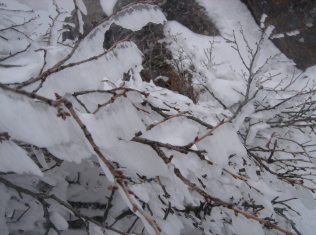 | やっと明るくなったので写真を写しながら下山.... しかし白い雪にはやっぱり青空が似合います。 |