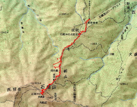 | 自宅-高松西IC-西条IC-R194-黒瀬ダム-山麓下谷駅(石鎚ロ−プウェイ)am3:00 山頂成就駅am3:08-成就社(参拝)am4:00-出発am4:10-八丁坂 前社ガ森(小休止)-夜明峠二の鎖小屋-弥山頂上(大休止)am6:45 出発am7:35-二の鎖小屋am8:05-夜明峠am8:30-前社ガ森(朝食)am8:40 八丁坂am9:50-成就社am10:30-石鎚ロ−プウェイ 歩行時間約6時間(休憩含む) |