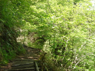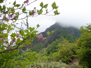 | 新緑の中、気持ちよく歩きます。 登山道沿いの山野草たちもしっかり水分を含み元気一杯! 空は相変わらず薄曇....時々、少しだけ青空がのぞきますが〜 なかなか快晴とまてはいきません。 歩き始めて約1時間、ゴヨウマツの休憩所で一休み〜 さすが日本百名山だけあり、ひっきりなしに登山者とお会いします。 10分ほど休憩し出発! |