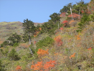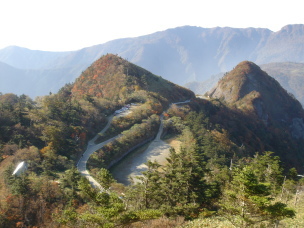 | 約三時間かけ、のんびり歩いた瓶ガ森ともお別れです。 紅葉見学で賑わう瓶ガ森林道を戻り、道の駅「木の香」できじラ−メンをごちそうになり(ごちそうさまでした) さとやんさん御夫婦とお別れした。 拙い御案内で、充分満足!とまでには程遠いですが少しでも四国の山の良さが伝わればなぁ〜 と、思った二日間でした。 さとやんさん御夫婦!ありがとうございました。 そしてサポ−トして頂いたエントツ山さん!マ−シ−さん!ありがとうございましたm(__)m |