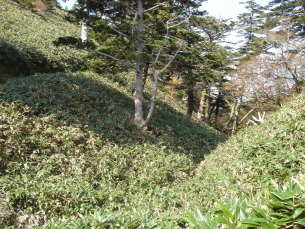 | 瓶ガ森といえば、まだ山歩きに興味が無かった頃、ドライブがてら一度登っただけです。 さて案内出来るのでしょうか????まぁ何とかなるさ!(相変わらず軽い私....) まず、男山へ向かいます。 昨日と違い、今日は晴れているが風が強く肌寒い〜上に一枚着込み出発です。 登り始めの急登は結構辛い〜でも途中の風景があまりにも素晴らしく辛さが和らぎます。 |