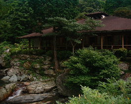 「一の谷の館」の「滝見岩風呂」(一人¥500)で汗を流す。