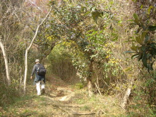 ▲ミカン畑横のコンクリ−ト道を進む...