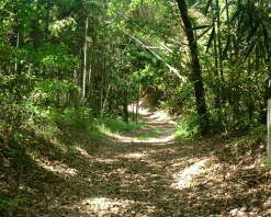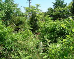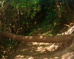 登って来た道と反対側にも道が見えたが樹木が倒れており通行出来ない。