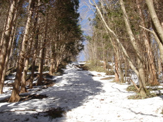 後山峠(おうどうとうげ)への道程、積雪を心配したが日陰部分に雪が少し残っている程度