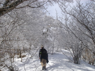 1370地点手前より、少しずつ霧氷が見られるようになり