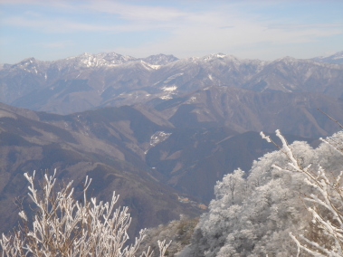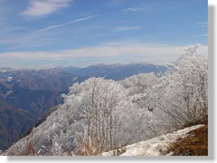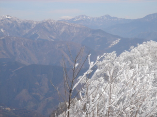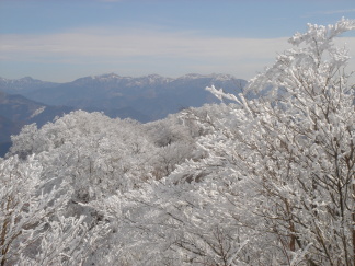 ▲霧氷越しの剣山・矢筈山方面