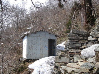 山頂直前の小屋の所まで来た!