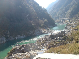 ▲春の気配?大歩危 ▲後山峠を過ぎ上の登山口までの林道