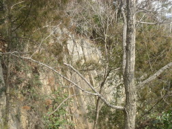 途中、柱状の岩場...ロ−プが張ってあり近づけない