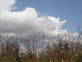 青空と白い雲を眺めながら昼食にする。