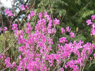新緑と薄いピンク色のツツジを眺めながら歩く...今が一番良い季節かも...