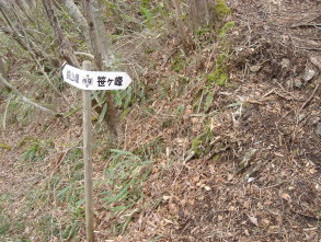 道沿いに進むと全然違う方向、半信半疑で笹が茂っている