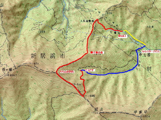▲ちち山の別れ ▲今から歩く冠山・平家平方面