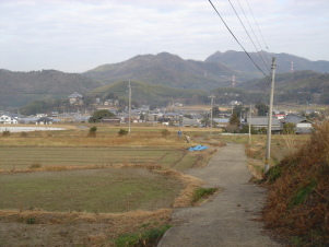 しばらく歩くと展望がよくなり山間の集落が見える。もう近いかなっ!