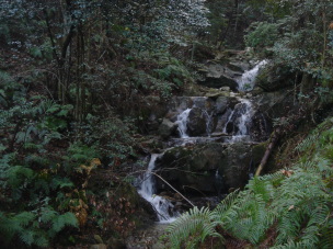 小さな沢?を渡りどんどん下って行くと車道と合流。