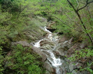 新緑の中、マイナスイオンを浴びながら気持ちよく歩く。