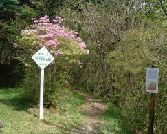 旧牛車道経由銅山越の文字の下に手書きで小さく「ツガザクラ群生」と