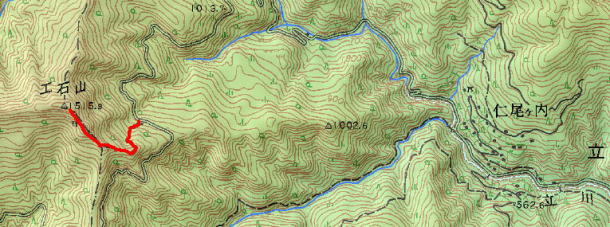 | 自宅am7:00-高松西ICam7:20-大豊IC8:15-県道5号線-立川番所(見学)am8:30 立川郵便局への分岐am8:50-町道仁尾ヶ内線-登山口am9:50-出発am10:00-ベンチam10:15 竜王峠への分岐am10:35-岩清水am10:45-祠がある山頂(昼食)am11:20-工石山三角点pm12:30 岩清水pm1:00-ベンチpm1:25-登山口pm1:45-町道仁尾ヶ内線-立川番所(見学)-立川出発pm3:10 県道5号線-新宮ICpm3:50-高松西IC |