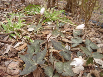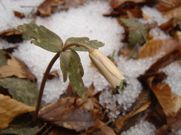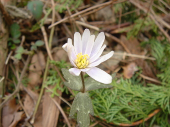 ▲中腹線遊歩道へ入る ▲ここにもユキワリイチゲ♪