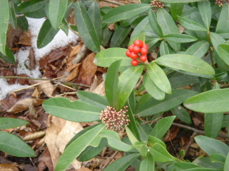 ▲大好きなブナ林 ▲ツルシキミの花と実