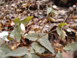 ▲残雪残るトラバ−ス...足を滑らすと谷底へ真っ逆さまな〜んて ▲ハシリドコロ..もうすぐ開花?