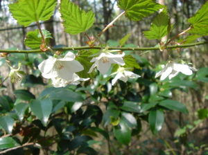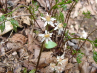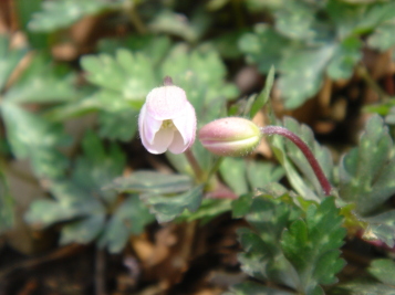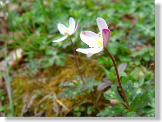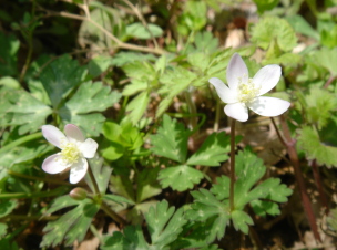 | 昼食後、西照神社周辺を散策〜 日当たりの良い場所をじっくり見ると少しですがニリンソウが カワイイ花をつけてました(^^♪うれしい〜 薄っすらピンク色をした花びらがなんともいえずいい雰囲気です。 ニリンソウの他にも色々な山野草があり大満足♪ |