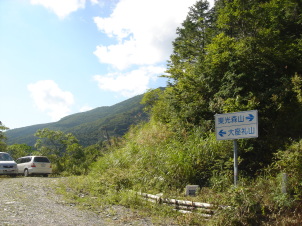 未舗装の林道を数分程、歩くと大座礼山登山口!ここまで車で来る事が出来るようです。ここにも数台、駐車中〜