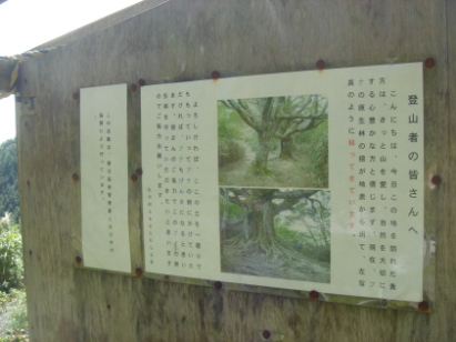登山口には皆さんのHPで拝見していた、ブナの根元に一握りの土を.....の案内文!