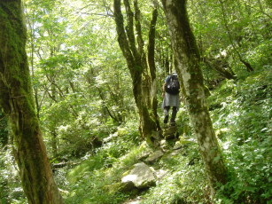 自然林の中、しばらくジグザクの急登が続く...まだまだ汗が吹き出る。